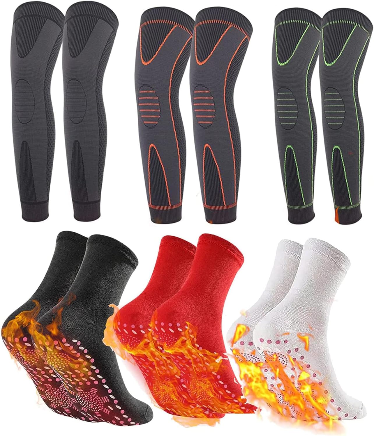 3Pack ReduceFast™ Mugwort Acupressure Detoxing&Shaping Knee Pads, Varicose Veins Treatment for Legs, with 3 Pairs Tourmaline Acupressure Self-Heating Shaping Socks (L)