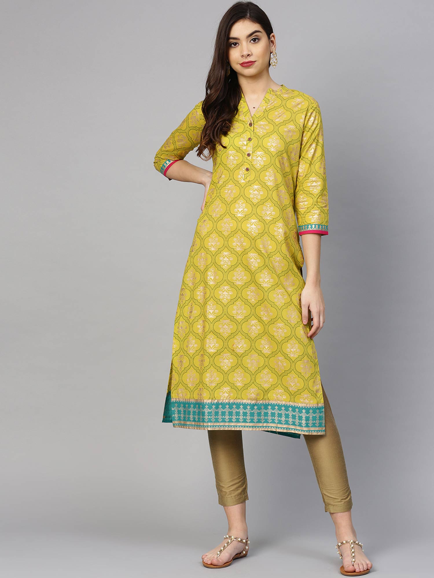 - Infuse a combination of style and panache into your wardrobe with this olive green kurta from KSUT. Crafted using premium quality cotton fabric, it provides a soft and comfortable feel against the skin.