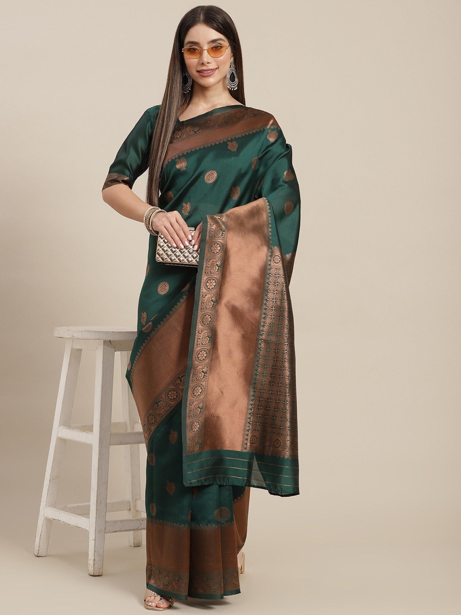 KSUT (House of Varanga) Green Woven Design Banarasi Silk Saree With Blouse Piece