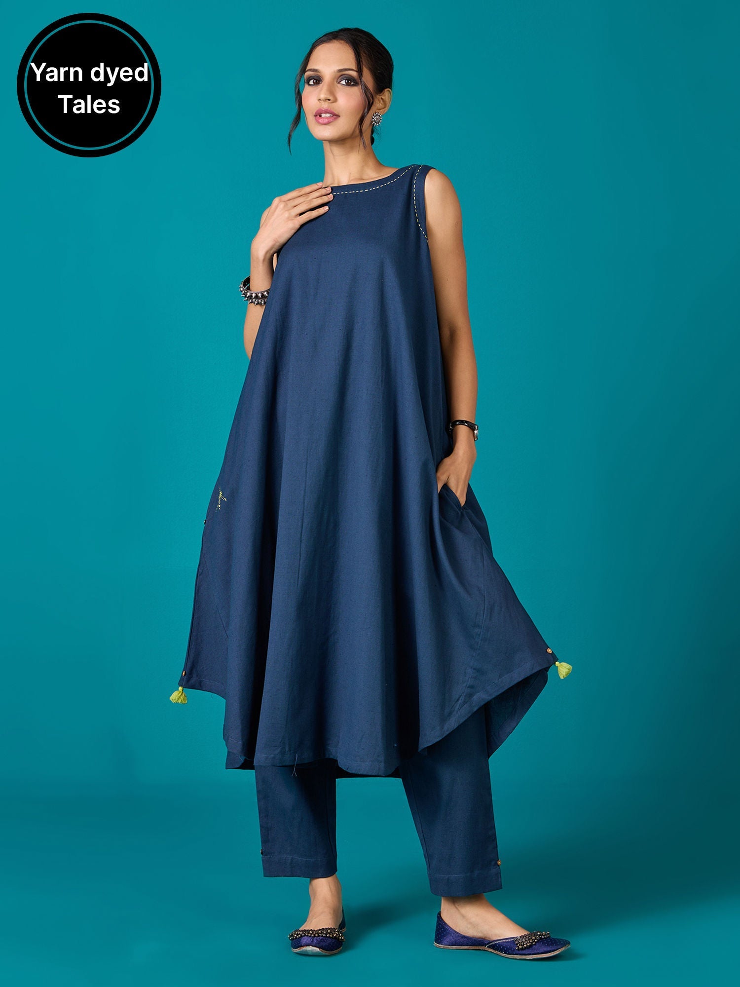 Likha Blue Kora Cotton Flex Flared Co-ord Set LIKKUR169 (Set of 2) - L