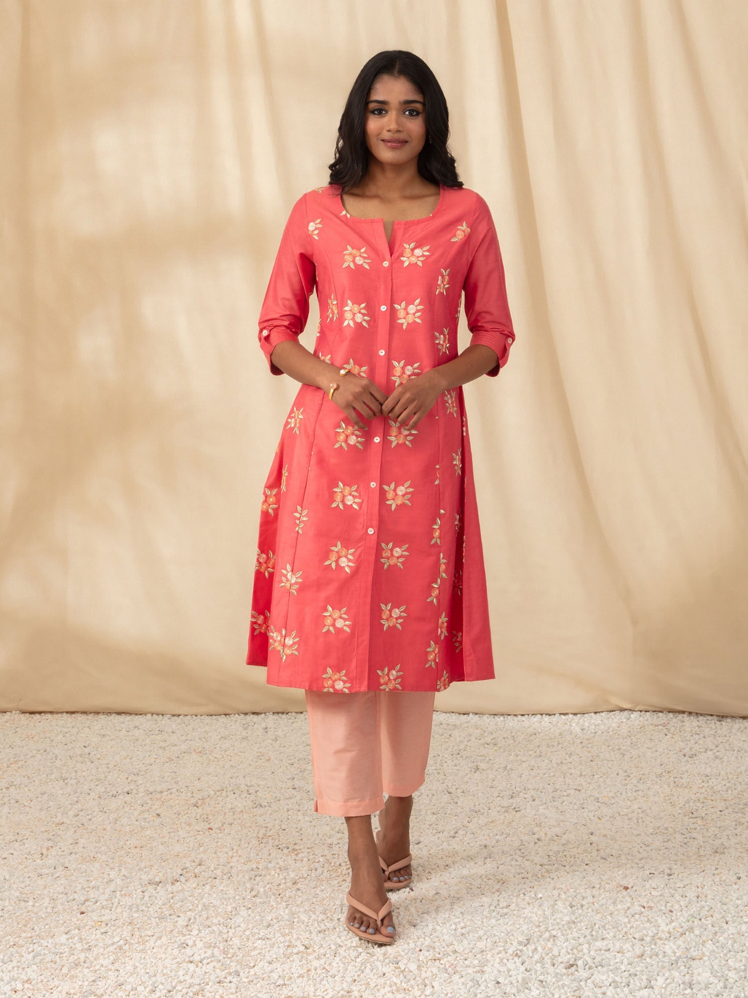 Likha Coral Pink Art Silk Embroidered Co-ord Set LIKSKD242 (Set of 2)