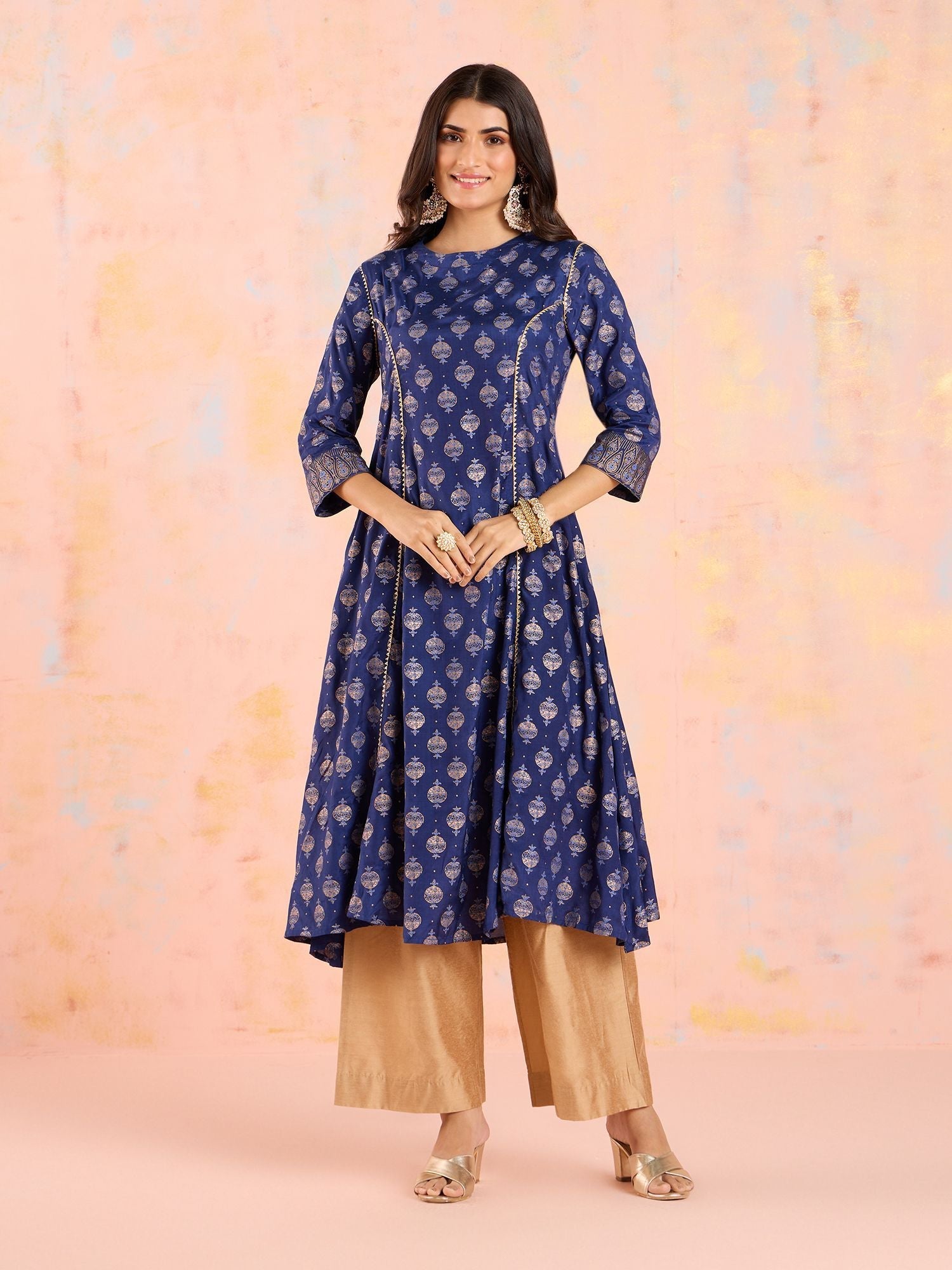 Likha Navy Blue Diwa Dazzle Bandhani Printed A-line Kurta LIKKUR210